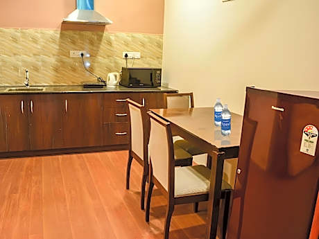 Experience an abundance of unparalleled facilities and features at Serene Boutique Hotel.Maintain seamless communication using the complimentary Wi-Fi at serviced apartment. Discovering Bangalore becomes even more accessible through the taxi and car hire amenities provided at the serviced apartment. For visitors traveling by automobile, complimentary parking is available. During your stay at this fantastic serviced apartment, the attentive front desk personnel can provide you with a range of amenities such as concierge service, luggage storage and safety deposit boxes. In search of city's top entertainment, seek assistance at the serviced apartment's ticket service and tours for reservations.At the serviced apartment, utilize the on-site dry cleaning service and laundry service to maintain your beloved travel attire fresh, allowing you to bring fewer clothes. Craving relaxation? Make the most of your stay at the Serene Boutique Hotel with convenient amenities like 24-hour room service, room service and daily housekeeping at your disposal. For visitors wishing to smoke, designated smoking zones can be found. At Serene Boutique Hotel, every guestroom is provided with convenient amenities and fittings to ensure a comfortable stay. Enhance your experience at serviced apartment with the knowledge that certain rooms are equipped with linen service and air conditioning for your convenience. Certain rooms boast in-room amusement features such as television and cable TV, offering guests an enjoyable stay. In select rooms within the serviced apartment, a refrigerator and a coffee or tea maker is available to cater to your requirements when desired.Essential restroom facilities are equally significant, and at the serviced apartment, some visitor bathrooms offer toiletries to enhance your experience. Begin your day with a scrumptious on-site breakfast available each morning at Serene Boutique Hotel.At the serviced apartment, an assortment of easily accessible and delicious meal choices are available to satisfy your appetite whenever it strikes.