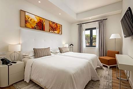 Located in upscale Cascais, the 5-star Sheraton Cascais Resort - Hotel & Residences is surrounded by quality golf courses and is 4-minute drive from the Atlantic Ocean. The recently-renovated resort includes a restaurant, outdoor swimming pools, extensive garden and a relaxing Spa & Wellness area. Featuring ample suites and rooms, the luxurious accommodations at the resort features an elegant décor and modern equipment. Each includes a private bathroom and a spacious seating area, with sofas and a flat-screen TV. All suites come with an equipped kitchenette. The resort's in house restaurant will provide guests with a true Portuguese culinary experience, with its extensive à la carte service and comprehensive wine list. Guests of the suites are also welcome to try their hand at cooking their own meals in the kitchenettes at their disposal. The resort also features the Flow Pool Bar, as well as the Yakuza Restaurant serving Japanese cuisine. The modern Spa & Wellness center comes complete with a sauna, Turkish Bath and hot tub. Relaxing massages are also available, upon request. The 24-hour front desk is always available to assist guests with a variety of services, including room service, car rental, bicycle rental, tour desk services and even booking airport shuttle services. There is an onsite Glass Terrace which was recently fully renovated. For the younger guests of the Sheraton Cascais, there is a new kids club, the Brave Kids. The Cascais center is within 3.1 mi, with a variety of shops, restaurants, cafés. Also at 3.1 mi is Cascais Beach, where guests will be able to enjoy activities like swimming, sun lounging or various water sports. Estoril is 6.2 mi away and features the famed Estoril Casino. Lisbon International Airport is 21 mi from the Sheraton Cascais Resort - Hotel & Residences.