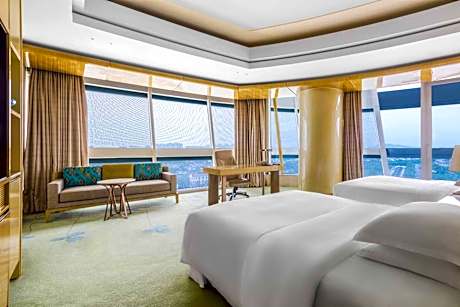 Sheraton Huzhou Taihu Lake Hot Spring Resort & Spa provides flawless service and all the necessary facilities for visitors. The hotel offers car hire amenities to assist you in discovering your desired offerings in Huzhou. When arriving by car, take advantage of the hotel's convenient on-site parking facilities. The hotel offers reception amenities including concierge service and safety deposit boxes to ensure a comfortable stay for guests.Whether you're here for an extended stay or simply require fresh garments, the hotel ensures your cherished travel attire remains spotless and accessible with the convenience of dry cleaning service located on the premises.Your stay will be comfortable with the presence of room service and daily housekeeping as an in-room amenity for your relaxation and enjoyment. Need something at the last minute? The convenience stores has you covered, ensuring your requirements are met without any inconvenience. In order to ensure the utmost level of relaxation, the guestrooms feature an inviting design and are equipped with all basic necessities, creating a delightful stay experience. Selected rooms offer in-room amusement like cable TV as a source of entertainment for guests to enjoy.Within specific rooms, instant tea and mini bar is conveniently available for your use. Understanding the significance of bathroom facilities in enhancing visitor contentment, hotel offers a hair dryer and bathrobes within a few chosen chambers. Start your day stress-free at Sheraton Huzhou Taihu Lake Hot Spring Resort & Spa as breakfast is made available for you on the premises.How about kicking off each day of your getaway with a delicious cup of coffee? At the hotel, relish in the invigorating taste of a freshly brewed, excellent coffee.Visitors with specific dietary needs can enjoy various culinary choices at Sheraton Huzhou Taihu Lake Hot Spring Resort & Spa, providing kosher and halal alternatives.Upon your arrival, don't miss experiencing bar for enjoyable in-house evening entertainment.Visitors wishing to create their personal culinary delights will appreciate the on-site BBQ facilities provided at this establishment.