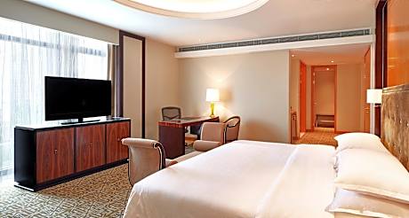 Experience an abundance of unparalleled facilities and features at Sheraton Jinan Hotel. Maintain seamless communication using the complimentary Wi-Fi at hotel. Effortlessly arrange transportation to and from the airport using the hotel's airport transfer services. Car hire offerings at the hotel enhance the ease of discovering Jinan. Guests can avail parking facilities at the hotel.During your stay at this fantastic hotel, the attentive front desk personnel can provide you with a range of amenities such as concierge service, express check-in or check-out, luggage storage and safety deposit boxes.For extended visits or whenever required, the laundry service ensures your preferred travel garments remain fresh and accessible.Craving relaxation? Make the most of your stay at the Sheraton Jinan Hotel with convenient amenities like room service and daily housekeeping at your disposal. For all your minor, last-minute requirements, the convenience stores can promptly cater to them, eliminating the need to venture out. At Sheraton Jinan Hotel, every guestroom is provided with convenient amenities and fittings to ensure a comfortable stay. Enhance your experience at hotel with the knowledge that certain rooms are equipped with linen service, blackout curtains and air conditioning for your convenience.A few accommodations within Sheraton Jinan Hotel offer unique design elements such as a separate living room.Certain rooms boast in-room amusement features such as television and cable TV, offering guests an enjoyable stay.In select rooms within the hotel, a refrigerator, a coffee or tea maker, bottled water, instant coffee, instant tea and mini bar is available to cater to your requirements when desired.It is worth noting that certain guest bathrooms feature a hair dryer, toiletries and bathrobes for your convenience.Be sure to stop by the elegant executive lounge where you can experience the lavish amenities and ambiance. Begin your day with a scrumptious on-site breakfast available each morning at Sheraton Jinan Hotel.Begin your day feeling refreshed and invigorated as you enjoy a delightful cup of quality coffee available at the cafe situated within the hotel. At the hotel, an assortment of easily accessible and delicious meal choices are available to satisfy your appetite whenever it strikes. Enjoy an entertaining evening with your fellow travelers at the hotel's bar. At Sheraton Jinan Hotel, visitors have the option to receive groceries directly in their accommodation, ensuring outstanding comfort and simplicity when it comes to meals. At the hotel, discerning guests can also enjoy on-site culinary facilities like BBQ facilities tailored to their preferences.During your stay at hotel, an array of engaging activities and amenities guarantees a delightful experience. Conclude your holiday perfectly with a visit to massage, spa and sauna on your final days.Be sure to drop by the pool at hotel at least once during your stay.Discover the fitness amenities at hotel to maintain your health and strength during your getaway.
