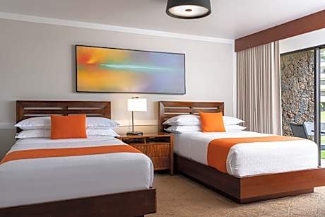 W58244676-01 At the foot of the historic Black Rock overlooking Ka’anapali Beach and the Pacific Ocean, the Sheraton Maui Resort & Spa offers an outdoor pool, 3 tennis and pickleball courts, a fitness center, and shuttle to and from Lahaina. The guest rooms are decorated with tropical themes and Hawaiian artwork. The rooms include air conditioning, a flat screen TV with cable and premium movie channels. A refrigerator and a coffee machine are also included. Select rooms include a microwave and a wet bar. Guests at the Sheraton Maui Resort & Spa can dine at one of 5 restaurants and bars. The Sandbar offers craft cocktails and local bites in the evenings. The Cliff Dove Grill offers a nightly cliff diving ceremony and American cuisine. Guests can join the resort activities, including hula dancing classes and scuba diving lessons. The full-service spa features oceanfront massages. The Sheraton Maui Resort & Spa is a short 10-minute walk to Whaler’s Village, which features shopping and restaurants. The Ka’anapali Golf Course is adjacent to the resort. Guests can also go snorkeling at the base of Black Rock.