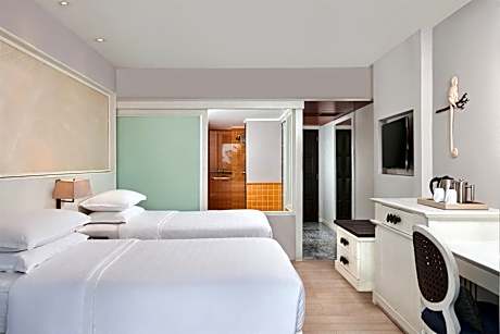 Sheraton Samui Resort offers top-notch services and amenities, ensuring guests experience utmost comfort. Visitors can take advantage of the accessible parking options directly at the hotel.Reception services such as concierge service and safety deposit boxes are available to accommodate your requirements. Room amenities like room service and daily housekeeping contribute to making a perfect selection for your stay. Each accommodation at Sheraton Samui Resort is thoughtfully created and adorned to provide visitors with a comfortable, home-like atmosphere.In certain rooms, the hotel offers blackout curtains and air conditioning for guest convenience and satisfaction. At Sheraton Samui Resort, the uniquely tailored rooms provide a configuration choice resembling a balcony or terrace. In select rooms, guests at the hotel can enjoy top-notch in-room entertainment with television and cable TV available for their convenience.Rest assured, in a few chosen rooms, you will find the convenience of a refrigerator, bottled water, a coffee or tea maker, instant coffee, instant tea and mini bar at your disposal. Sheraton Samui Resort offers a hair dryer, toiletries and bathrobes in the restrooms of specific accommodations. Experience an unforgettable evening with your fellow travelers just a short distance away, at hotel's bar. License Number(s): 9/2566