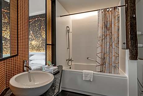 At Siam @ Siam Design Hotel Bangkok, exceptional service and top-notch amenities create a memorable experience for guests. Complimentary internet access is available in the hotel to ensure you stay connected during your visit. Amenities at car hire offered by Siam @ Siam Design Hotel Bangkok simplify the organization of your excursions, tourist activities, and other adventures in Bangkok. Complimentary parking is available for guests. Continuously receive the support you require through front desk amenities such as concierge service, luggage storage and safety deposit boxes.Chilly nights become more delightful than balmy ones, as you snuggle near the hotel's inviting hearth.Always look your best in your preferred attire with the dry cleaning service and laundry service provided at Siam @ Siam Design Hotel Bangkok.Craving relaxation? In-room amenities such as room service and daily housekeeping allow you to maximize your time spent inside the room. For the health and well-being of all guests and staff, smoking is restricted exclusively to assigned zones.Accommodations come equipped with all the conveniences required for a restful night's slumber. A selection of rooms feature blackout curtains and air conditioning to ensure your comfort and convenience.A few chosen rooms are equipped with television and cable TV to ensure guest amusement. In certain rooms, the hotel offers visitors access to a refrigerator, bottled water, a coffee or tea maker and mini bar.In the hotel, certain guest bathrooms come equipped with essential bathroom amenities, such as a hair dryer, toiletries and bathrobes, ensuring a comfortable stay for guests. A delightful breakfast is the perfect way to begin your day, and at Siam @ Siam Design Hotel Bangkok, you can always indulge in a scrumptious meal on-site.Allow your journey to be free from the pangs of hunger! On-site eateries offer delicious and accessible meal choices. An evening spent at hotel's bar can offer as much enjoyment as venturing out with your fellow travelers.At Siam @ Siam Design Hotel Bangkok, guests can take pleasure in the delightful recreational amenities provided for their entertainment. At Siam @ Siam Design Hotel Bangkok, a wide array of amenities guarantees a fulfilling experience throughout your visit. Make your holiday truly memorable by taking a rejuvenating plunge into the pool. At Siam @ Siam Design Hotel Bangkok, the poolside bar provides an excellent incentive to enjoy extended hours in your swimwear.At the hotel fitness center, you have the option to engage in your daily exercise routine or simply alleviate your jet lag by breaking a sweat.