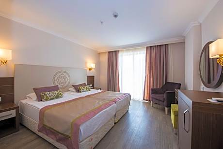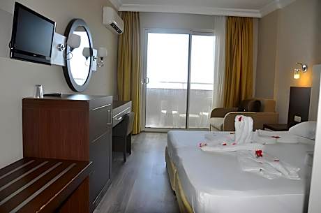 Experience an abundance of unparalleled facilities and features at Side Alegria Hotel & Spa - All Inclusive-Adult Only. Maintain seamless communication using the complimentary Wi-Fi at resort. Effortlessly arrange transportation to and from the airport using the resort's airport transfer services. Discover the wonders of Manavgat with ease by utilizing the services provided by car hire and shuttle. For visitors traveling by automobile, complimentary parking is available. During your stay at this fantastic resort, the attentive front desk personnel can provide you with a range of amenities such as concierge service, express check-in or check-out, luggage storage and safety deposit boxes. Obtaining passes for the town's top entertainments becomes effortless with resort's tours.At the resort, utilize the on-site dry cleaning service and laundry service to maintain your beloved travel attire fresh, allowing you to bring fewer clothes. Craving relaxation? Make the most of your stay at the Side Alegria Hotel & Spa - All Inclusive-Adult Only with convenient amenities like room service and daily housekeeping at your disposal.For all your minor, last-minute requirements, the convenience stores can promptly cater to them, eliminating the need to venture out.For visitors wishing to smoke, designated smoking zones can be found. At Side Alegria Hotel & Spa - All Inclusive-Adult Only, every guestroom is provided with convenient amenities and fittings to ensure a comfortable stay. Enhance your experience at resort with the knowledge that certain rooms are equipped with linen service and air conditioning for your convenience.A few accommodations within Side Alegria Hotel & Spa - All Inclusive-Adult Only offer unique design elements such as a balcony or terrace. Certain rooms boast in-room amusement features such as television and cable TV, offering guests an enjoyable stay. In select rooms within the resort, a coffee or tea maker and mini bar is available to cater to your requirements when desired.It is worth noting that certain guest bathrooms feature a hair dryer and toiletries for your convenience. Begin your day with a scrumptious on-site breakfast available each morning at Side Alegria Hotel & Spa - All Inclusive-Adult Only. Begin your day feeling refreshed and invigorated as you enjoy a delightful cup of quality coffee available at the cafe situated within the resort.At the resort, an assortment of easily accessible and delicious meal choices are available to satisfy your appetite whenever it strikes. Create unforgettable moments with your fellow voyagers just steps away, at resort's bar and nightclub, for a delightful evening together.At Side Alegria Hotel & Spa - All Inclusive-Adult Only, guests can access vending machines that provide light snacks and beverages 24 hours a day. During your stay at resort, an array of engaging activities and amenities guarantees a delightful experience. During your stay, don't forget to allocate some moments to experience the readily available shoreline.Conclude your holiday perfectly with a visit to massage, hot tub, salon, solarium, spa and sauna on your final days.Be sure to drop by the pool at resort at least once during your stay.Discover the fitness amenities at resort to maintain your health and strength during your getaway.