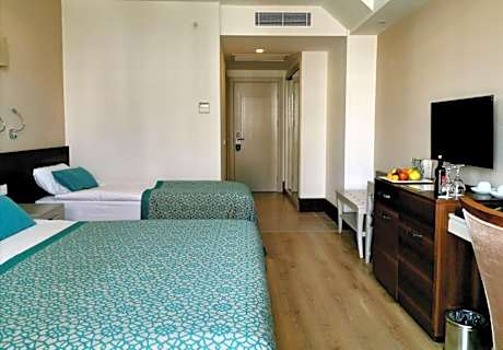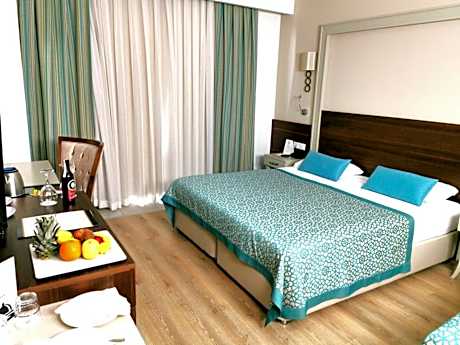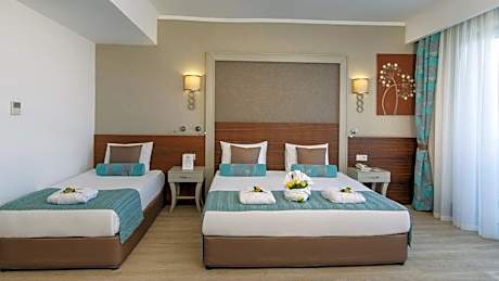 Offering an outdoor pool and a private beach area, Side Crown Palace Ultra All Inclusive is located in the Kumkoy district in Side. The property also has a garden and guests can have fun at the water park. This hotel features both free WiFi and free private parking as well. Modernly decorated, every room at this hotel is air conditioned and is equipped with a flat-screen TV with satellite channels. Some units have a seating area for your convenience. All rooms include a private bathroom with slippers, free toiletries and a hair dryer. There is a 24-hour front desk, hairdresser's, and gift shop at the property. Laundry, dry cleaning and ironing services can also be provided upon request at an additional charge. You can play table tennis, billiards, and darts at the hotel. Side Antique City is 4.7 mi from Side Crown Palace Ultra All Inclusive, while Side Museum is also 4.7 mi away. The nearest airport is Antalya Airport, 36 mi from Side Crown Palace Ultra All Inclusive.