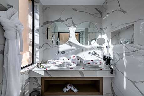 Spread across 2-hectares of gardens, this boutique hotel is a 2.6 mi shuttle ride from Jemaâ El Fna Square and faces the Atlas Mountains. It offers luxury accommodations, outdoor pool heated all-year and a spa center. Each air-conditioned room is equipped with free Wi-Fi, a flat-screen TV with a DVD player and a private terrace or garden. A mini-bar is provided and some suites have a heated private pool. Surrounded by 9 golf courses, Sirayane Boutique Hotel & Spa offers hammam and beauty and massage treatments. Guests are free to use the fitness room or mini tennis and there is a library of books and DVDs. The restaurant serves Moroccan and International specialties for lunch and dinner. Guests can enjoy a cocktail in the bar while taking in views of the Atlas Mountains. The hotel is 2.7 mi from Marrakech-Menara Airport. A free shuttle bus to the Jemaâ El Fna Square runs 7 times per day. For guests with cars, free parking is offered on site. An airport shuttle can be arranged at an extra cost.