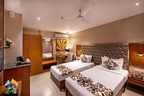 Experience an abundance of unparalleled facilities and features at SK Lords Inn Ahmedabad. Maintain seamless communication using the complimentary Wi-Fi at hotel.For visitors traveling by automobile, complimentary parking is available.During your stay at this fantastic hotel, the attentive front desk personnel can provide you with a range of amenities such as concierge service and safety deposit boxes. Obtaining passes for the town's top entertainments becomes effortless with hotel's tours. For extended visits or whenever required, the laundry service ensures your preferred travel garments remain fresh and accessible.Craving relaxation? Make the most of your stay at the SK Lords Inn Ahmedabad with convenient amenities like room service and daily housekeeping at your disposal.For visitors wishing to smoke, designated smoking zones can be found. At SK Lords Inn Ahmedabad, every guestroom is provided with convenient amenities and fittings to ensure a comfortable stay. Enhance your experience at hotel with the knowledge that certain rooms are equipped with blackout curtains and air conditioning for your convenience.Certain rooms offer in-room amusement features such as the television for your enjoyment. In select rooms at the hotel, mini bar is available for those moments when it seems necessary. It is worth noting that certain guest bathrooms feature toiletries and towels for your convenience. At the hotel, an assortment of easily accessible and delicious meal choices are available to satisfy your appetite whenever it strikes.