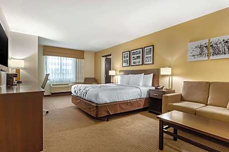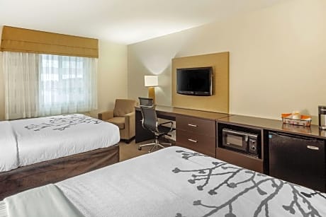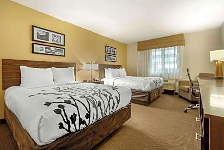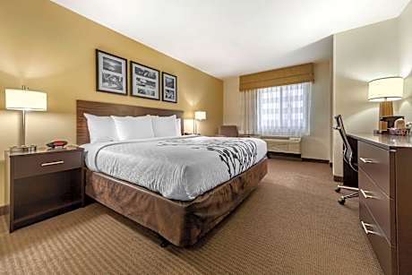 The newly opened Sleep Inn & Suites is located adjacent to Alerus Center – Grand Forks’ premiere entertainment facility and home of University of North Dakota football. This hotel is also near Splasher’s South Seas and River Cities Speedway. Guests of the hotel will enjoy using the indoor heated pool and hot tub, which can be accessed year-round. Comfortable interior halls offer safe and easy room access. Guest laundry service is available, as well as plenty of bus, car and truck parking. Business travelers will appreciate the on-site Business Center, offering a computer with Internet and access to copy and fax services. Other amenities include free wireless high-speed Internet access, free daily newspaper, free coffee and free Morning Medley Hot Breakfast. All spacious guest rooms offer a flat-screen television with cable, microwave, refrigerator, coffee maker, desk, alarm clock, hair dryer, pillow-top mattress, iron and ironing board. Some rooms feature a sofa sleeper. This is a nonsmoking hotel.