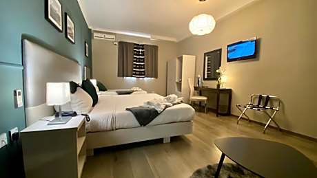 This large room features air conditioning, a 32" LED TV with satellite channels, and free WiFi. The private bathroom is complete with toiletries.