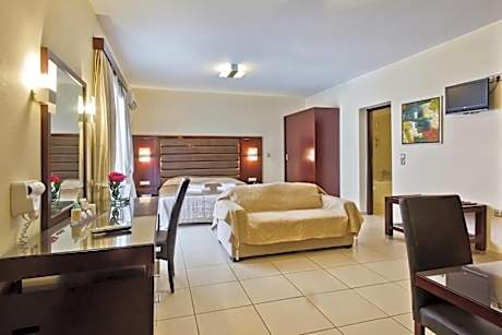 Located 820 feet from the beach and 2297 feet from the town of Pigadia, Socrates Studios & Apartments offers self-catering accommodations with air conditioning and free Wi-Fi. It includes a swimming pool and 2 bars. All studios and apartments at Socrates are modernly decorated featuring dark wood furnishings. Each unit has a small kitchen with mini fridge and a dining table. Other facilities include an LCD TV, hairdryer and a safety box. Guests can enjoy a refreshing drink or a light meal either at the main bar of the hotel or at the sun terrace by the pool. A lounge area with a 42” satellite TV is also available. The port of Karpathos is just 0.6 mi away from Socrates, while Karpathos Airport is at 8.1 mi. Free public parking is available near the premises.