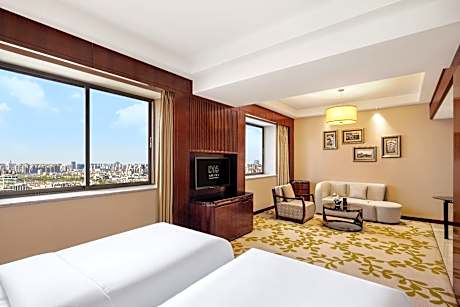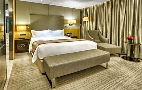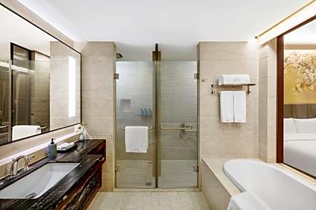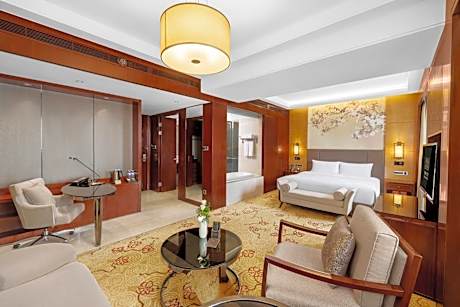 Chinese elements, LCD TV, mini-bar, free WiFi, walk-in wardrobe. Bathroom with branded toiletries. Guests can enjoy Executive Lounge benefits: - Personalized express check-in and check-out at the Yijingge executive floor front desk - Complimentary late check-out until 16:00 (subject to availability) - Yijingge from 6:30 on weekdays Free buffet breakfast at 10:00 and weekends from 6:30 to 11:00 - happy hour from 17:30 to 19:30, free coffee, tea, juice, soft drinks and fruits, you can bring one visitor to share at no extra charge , free use of the Yijingge meeting room for one hour per day (subject to reservation), free 20 pages of business center services per day (including printing, copying, scanning and faxing), daily fruit plate in the room, unlimited local calls, turndown Small gifts, wake-up coffee or tea, free shoe shine service.