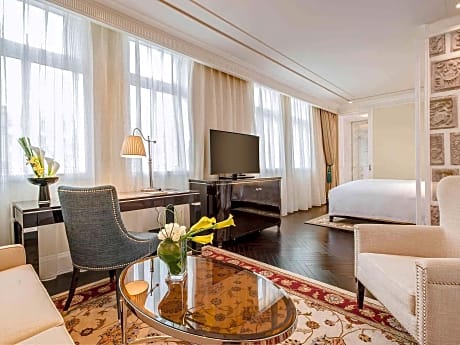 Experience an abundance of unparalleled facilities and features at Sofitel Legend Peoples Grand Hotel Xian.Maintain seamless communication using the complimentary Wi-Fi at hotel.Effortlessly arrange transportation to and from the airport using the hotel's airport transfer services.Discover the wonders of Xian with ease by utilizing the services provided by car hire and shuttle. For visitors traveling by automobile, complimentary parking is available. During your stay at this fantastic hotel, the attentive front desk personnel can provide you with a range of amenities such as concierge service, express check-in or check-out, luggage storage and safety deposit boxes. Obtaining passes for the town's top entertainments becomes effortless with hotel's tours. At the hotel, utilize the on-site dry cleaning service and laundry service to maintain your beloved travel attire fresh, allowing you to bring fewer clothes.Craving relaxation? Make the most of your stay at the Sofitel Legend Peoples Grand Hotel Xian with convenient amenities like room service and daily housekeeping at your disposal. Kindly note that smoking is prohibited in the hotel to ensure fresher air for all visitors.At Sofitel Legend Peoples Grand Hotel Xian, every guestroom is provided with convenient amenities and fittings to ensure a comfortable stay.Enhance your experience at hotel with the knowledge that certain rooms are equipped with blackout curtains and air conditioning for your convenience.Certain rooms boast in-room amusement features such as daily newspaper, television and cable TV, offering guests an enjoyable stay.In select rooms within the hotel, a refrigerator, bottled water and mini bar is available to cater to your requirements when desired. It is worth noting that certain guest bathrooms feature a hair dryer, toiletries and bathrobes for your convenience. Begin your day with a scrumptious on-site breakfast available each morning at Sofitel Legend Peoples Grand Hotel Xian.Begin your day feeling refreshed and invigorated as you enjoy a delightful cup of quality coffee available at the cafe situated within the hotel. At the hotel, an assortment of easily accessible and delicious meal choices are available to satisfy your appetite whenever it strikes.Enjoy an entertaining evening with your fellow travelers at the hotel's bar. During your stay at hotel, an array of engaging activities and amenities guarantees a delightful experience. Conclude your holiday perfectly with a visit to massage, hot tub, salon, spa and sauna on your final days.Be sure to drop by the pool at hotel at least once during your stay. Discover the fitness amenities at hotel to maintain your health and strength during your getaway.