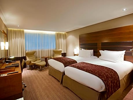 El Sofitel Heathrow tiene acceso directo a la Terminal 5 a través de una pasarela cubierta. Cuenta con un moderno spa, un gimnasio abierto las 24 horas, 2 bares y 2 restaurantes. Se puede llegar al centro de Londres con servicios de tren directos desde el aeropuerto de Heathrow. El hotel ofrece vistas panorámicas al aeropuerto gracias a su ubicación. Todas las amplias habitaciones tienen aire acondicionado, conexión Wi-Fi gratuita, TV vía satélite, baño con bañera y ducha independientes y servicio de habitaciones las 24 horas. Los huéspedes pueden relajarse y ver Sky Sports en una gran pantalla de televisión en el Sphere Bar, o tomar té y pasteles en el Tea Salon. El restaurante La Belle Époque sirve cocina francesa de fusión en un entorno elegante y el restaurante Viver ofrece un menú de cocina internacional. El Sofitel London Heathrow de 5 estrellas está a 21 minutos en tren del centro de Londres desde la estación de tren de la Terminal 5, que está a 5 minutos a pie. La Belle Époque, nuestro restaurante galardonado con 2 rosetas AA, sirve cocina francesa de fusión en un entorno elegante y el restaurante Viver ofrece un menú de cocina internacional.