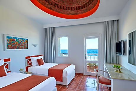 Perfectly in tune with the landscape around it, JAZ Neo Reef Marsa is a luxury retreat right on the shore of the Red Sea. JAZ Neo Reef Marsa has a beautiful sandy beach on its doorstep, and a number of swimming pools set amid lush gardens and tranquil waterways. All that makes it a great place to relax and forget about everyday life. With accommodations and interiors that blend Arabian tradition with modern amenities, JAZ Neo Reef Marsa invites couples, families and small groups to indulge in sun-drenched splendor. The Marsa Alam International Airport is only a few minutes’ drive from the resort.