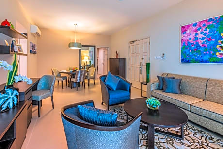 The spacious double room has a private bathroom, air conditioning, a washing machine, as well as a seating area with a flat-screen TV. The double room's kitchen, which features kitchenware, is available for cooking and storing food. The double room offers a wardrobe, a safe deposit box and pool views. The unit has 1 bed.