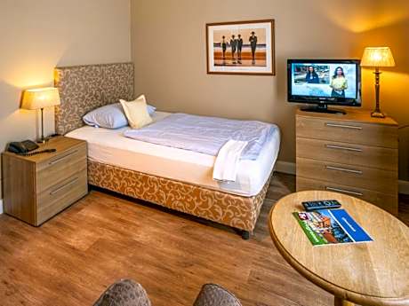 Offering free toiletries and bathrobes, this single room includes a private bathroom with a shower, a hairdryer and slippers. The single room features parquet floors, a seating area with a TV, a wardrobe, a safe deposit box, as well as a tiled floor. The unit offers 1 bed.