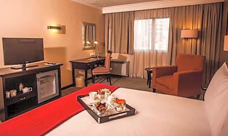 In the financial district, the modern-designed Southern Sun Pretoria is between the Union Buildings and the Breytenbach State Theatre. The outdoor pool is surrounded by landscaped grounds. All spacious rooms feature a flat-screen TV, air conditioning and a private bathroom. Each offers city views or overlooks the pool. Wi-Fi facilities are available. Guests can choose from a breakfast buffet or enjoy lunch or dinner in the Oasis Restaurant. The hotel bar offers a variety of drinks and snacks. The Pretoria provides self-service workstations, where guests can print, scan and fax. The gym includes modern equipment. Loftus Versfeldpark and Loftus Versfeld Rugby Stadium are a 4-minute drive from the hotel. Eastwood Shopping Center is a 3-minute walk away and OR Tambo International Airport is 30 miles from the property.