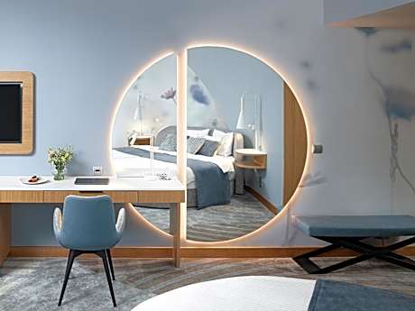 Tranquilly located in a fabulous setting on the shores of the seven lakes of Sárvár, the award winning Spirit Hotel Thermal Spa serves as the premier reference for European Spa Hotels. Featuring 265 rooms with private balconies, guests can choose between a variety of room and suite types and designs. We are proud to present our newly refurbished rooms as of 2023, aiming to provide a new sense of our Spirit lifestyle. The property features a spacious Oasis Spa with over 20 indoor and outdoor wellness pools including a 82 foot swimming pool, nine saunas, hamam, beauty and a medical center with more than 100 personalized treatments. The certified chemical-free healing hot spring pools are filled every morning from a depth of 3.5 feet, ensuring the optimal healing and rejuvenation of the body. With two restaurants our clientele can take part in a culinary journey through international and regional cuisines curated with local and organic ingredients, while ensuring that all dietary requirements are met. Meals can be served in the stylish Onyx Restaurant, or by the Oxygen Pool Bistro. There are also indoor and outdoor dining options, a conservatory overlooking the forest, two bars and a tea corner. Spirit Hotel also offers a well-equipped fitness room, bowling alleys, squash and two tennis courts. In the surroundings you can enjoy running, (nordic) walking, cycling, horse-riding and the boating lake. The Nádasdy Castle and the historical town center can be reached within a 15-minute walk. The 740 square yard adaptable conference space equipped with cutting edge technologies makes Spirit Hotel Thermal Spa the ideal location for conferences, trainings, team-buildings and weddings. Private parking is possible on site at an additional cost.