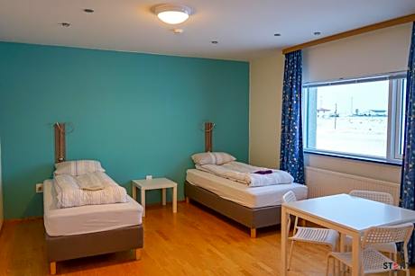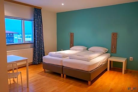 This hostel is a 10-minute drive from Keflavík International Airport. It offers breakfast from 03:30 and free Wi-Fi. Facilities include a shared kitchen, TV lounge and terrace. Start Hostel’s rooms offer simple, modern décor and blackout blinds. Guests can choose between rooms with a private bathroom or dormitory facilities. A communal laundry room is also available. Restaurants and a gym are within 5 minutes’ walk, while a children’s playground is found on site. The Blue Lagoon geothermal spa is 12 mi from Start Hostel Keflavík Airport. The Viking World museum is a 10-minute drive away.