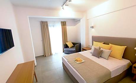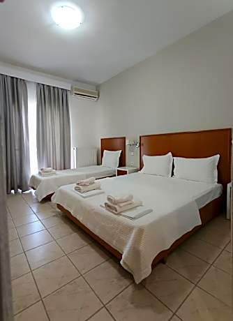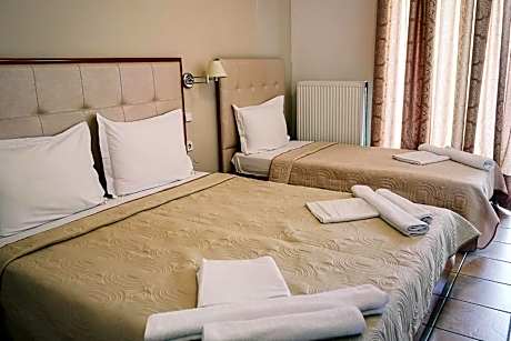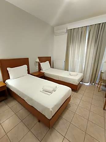 Ιndoor space approx. 20sqm Superior rooms are in A buildng, which is renovated part of the hotel Superior double rooms are on the first and second floor Superior Double room equipped with twin or double beds and bathroom with a shower. Rooms are simply furnished and have a Flat TV, mini fridge, individually adjusted air-conditioning unit. Free of charge Wi-Fi Internet connection