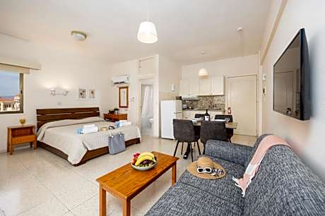 Stephanos Garden Apartments in Polis Chrysochous provides accommodations with a garden and a bar. This condo hotel provides free private parking, an elevator, and free Wifi. The property offers barbecue facilities and outdoor furniture. The condo hotel will provide guests with air-conditioned units offering a wardrobe, a kettle, a toaster, a fridge, a safety deposit box, a flat-screen TV, a balcony, and a private bathroom with a bath. At the condo hotel, all units are equipped with bed linen and towels. A selection of options including warm dishes, local specialities, and fresh pastries are served for the continental breakfast. You can prepare your own food in the kitchenette before eating in the private dining area, and the condo hotel also offers a snack bar. You can play billiards at Stephanos Garden Apartments. In addition to a year-round outdoor pool, the accommodation also features kids pool. Polis Municipal Beach is 1.2 miles from Stephanos Garden Apartments, while Paphos Zoo is 17 miles away. Paphos International Airport is 28 miles from the property.