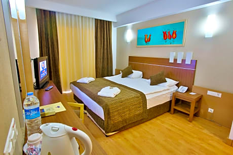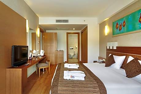 Located in the seafront of Side district, this hotel offers a private golden sandy beach. The property includes outdoor and indoor swimming pools, water slides, and an extensive spa and wellness center. Free WiFi is available in all rooms and all hotel areas. Sunis Kumköy Beach Resort Hotel & Spa offers bright rooms equipped with air conditioning and TV. All rooms have a balcony with views of the Mediterranean Sea. You can discover traditional Turkish cuisine, seafood and a variety of international tastes including Asian and Mexican dishes at the à la carte restaurants of Sunis. The buffet restaurants also offer children’s menu. The bars serve a variety of alcoholic and nonalcoholic drinks. The spa and wellness center offers relaxation with a hamam and massages. There is also a well-equipped fitness center. Sunis Kumkoy offers 2 mini clubs for younger guests between May and September at the resort, whose staff can speak English. Side town center is a 10-minute drive from the hotel. Antalya Airport is 37 mi away.