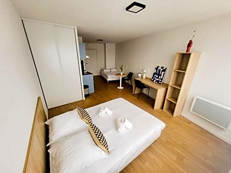 4.4 miles from Saint Michel Basilica in Gradignan, Sweetly I-Art Gradignan - Bordeaux Sud offers accommodations with access to a fitness room. Free Wifi is available throughout the property, and private parking is available on site. The accommodation features an elevator and luggage storage space for guests. Some units also have a well-equipped kitchenette with a dishwasher, a microwave, and a fridge. At the condo hotel, every unit is equipped with a private bathroom. The breakfast offers buffet, continental options and fresh pastries and juice are being served. There is a coffee shop, and a mini-market is also available. Guests can also relax in the garden or in the shared lounge area. Stone Bridge is 5.2 miles from the condo hotel, while Museum of Aquitaine is 5.7 miles from the property. Bordeaux–Mérignac Airport is 7.5 miles away.