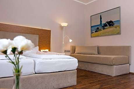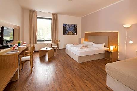 Just 600 metres from Rheydt Central Station, T3 Hotel Cityloft offers a hearty buffet breakfast and free on-site parking. The historic town centre is 500 metres away. Rooms at T3 Cityloft were newly renovated in July 2012, and offer bright interiors and new furnishings. All rooms include a flat-screen TV, safety deposit box, and private bathroom. Free Wi-Fi is available in the lobby and most rooms. Breakfast is served each morning in the bright, spacious breakfast room. Guests will also find a range of restaurants, pubs and cafés within 300 metres. Our Reception is available from 2 pm until 10 pm. Düsseldorf is approximately 30 minutes’ drive away, and it is 2.5 km to the A61 motorway.