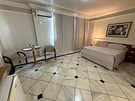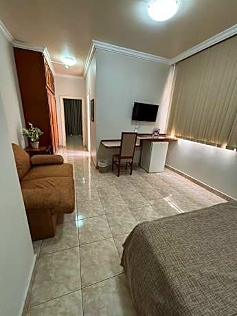 Tamareiras Park features a gym, outdoor pool and air-conditioned rooms with free Wi-Fi. Located in Uberaba Center, its restaurant serves an à la carte menu with a wine selection, and a daily breakfast with homemade delicacies. The rooms offer a classic décor with a mini-bar, cable TV and bathroom. Most feature a private balcony. Breakfast and a variety of meals can be ordered through room service. This hotel is just 1 mi from Uberaba Bus Station. Mário de Almeida Franco Airport can be reached within an 10-minute drive. Guests can enjoy foosball and pool tables in the game-room, or relax in the sauna. The 24-hour front desk can arrange laundry services. Tamareiras Park Hotel offers free valet parking.