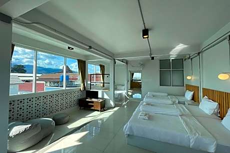 This air-conditioned quadruple room is consisted of of a flat-screen TV with streaming services, a private bathroom as well as a balcony. The unit has 4 beds.