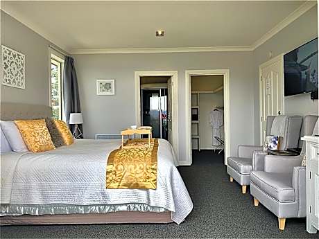 This room has a private patio with lovely views of Lake Tekapo and surrounding mountains. French doors tinted for your privacy lead out to your own patio and outdoor seating. It also includes new flat-screen TV with Netflix, a refrigerator and tea and coffee making facilities.