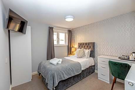 Bright and airy bedroom with luxury Hypnos bed and flat-screen TV. A modern bathroom with power shower and free toiletries are also provided.