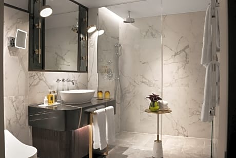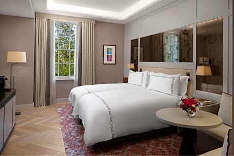 Ubicado en la adinerada zona del West End de Londres, el Biltmore Mayfair está a pocos pasos de las mejores tiendas, restaurantes y parques reales. Ubicado en Grosvenor Square, el hotel está a solo unos minutos a pie de New Bond Street, Oxford Street y Regent Street, mientras que los frondosos alrededores de Hyde Park están a 7 minutos a pie. Las espaciosas habitaciones y suites reflejan el origen del edificio como una elegante residencia privada londinense. Todas cuentan con baños de mármol italiano, un sistema de sonido Ruark, Smart TV, minibar, máquina de café expreso y WiFi gratuito. Los huéspedes pueden cenar en el Café Biltmore, Mayfair, supervisado por el chef ejecutivo Luis Campos. El Café Biltmore está abierto para el desayuno, el almuerzo y la cena, y ofrece un menú de temporada con platos de pescado y carnes al horno de leña, mariscos frescos, ensaladas exclusivas y platos a base de plantas. Además, los huéspedes pueden disfrutar del té de la tarde en The Tea Lounge y de una variedad de los mejores vinos y licores premium preparados por expertos mixólogos en The Pine Bar. El gimnasio de última generación está abierto las 24 horas.