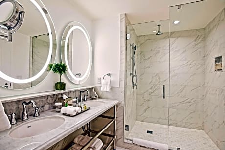 The spacious suite features 1 bedroom and 1 bathroom with a shower and free toiletries. The suite provides air conditioning, a seating area, heating, a flat-screen TV, as well as sea views. The unit offers 1 bed.