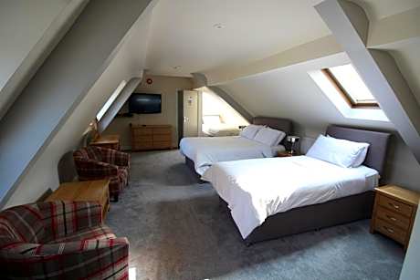 This quadruple room has a tea and coffee maker, a seating area, TV, as well as wine/champagne for guests. The unit has 3 beds.