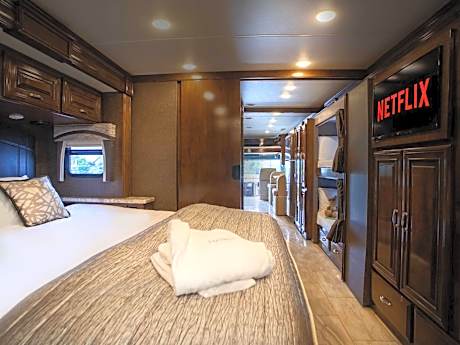 Featuring a private entrance, this mobile home is consisted of of 1 living room, 2 separate bedrooms and 2 bathrooms with a shower and a hairdryer. Guests will find a stovetop, a refrigerator, kitchenware and an oven in the fully equipped kitchenette. The mobile home also has a barbecue. The mobile home offers a tea and coffee maker, a seating area, a dining area, a wardrobe, as well as a flat-screen TV with streaming services. The unit offers 4 beds.