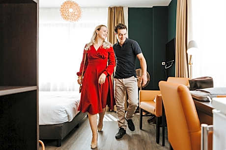 Maisonette rooms feature a spacious two floor layout, a free mini-bar, a Smart TV and a kitchenette including a combination microwave and a Senseo coffee machine. The rooms offer city views.