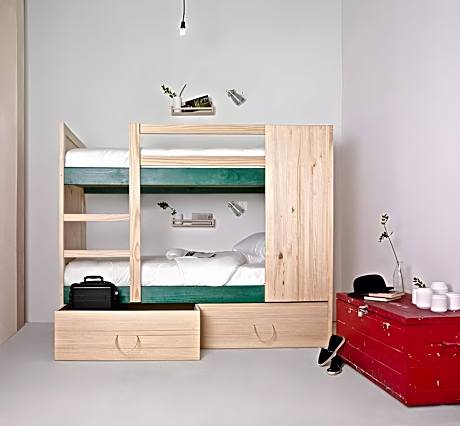 One bunk bed in a 4-bed female dormitory with private bathroom, featuring a small balcony with street views. The dormitory offers soundproofing, air conditioning and heating, and comes with free Wi-Fi. Bed linen is provided free of charge. Towels are provided at a surcharge.