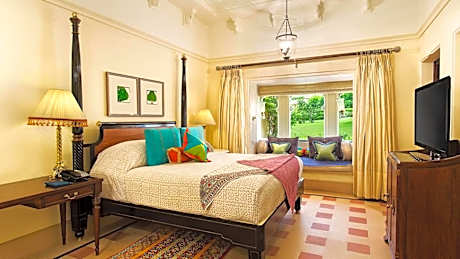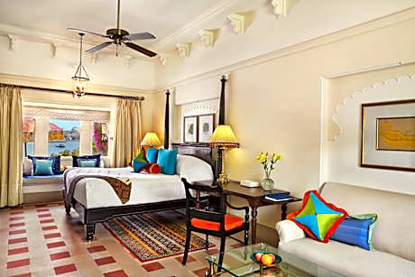 Spread over 50 acres, pavilions and domes feature at The Oberoi Udaivilas, which features grand architecture inspired by the palaces of Rajasthan. The property is built on 200-year old hunting grounds of the Maharana of Mewar. Located on the banks of Udaipur’s Lake Pichola, it has 3 restaurants, 2 heated outdoor pools and a luxurious spa. Free WiFi is available in the rooms of the property. Courtyards, fountains and gardens occupy the Oberoi Udaivilas Udaipur. Approximately 5 mi from Udaipur Railway Station, the 5-star property is a 45-minute drive to Udaipur’s Maharana Pratap Airport. Spacious and modern, each room has a seating area by the window. Artworks and rugs decorate the rooms, which are equipped with a flat-screen satellite TV, DVD player and electronic safe. They also include a mini-bar and marble bathroom with views. A variety of movies and audio CDs are available for guest to borrow. Practice yoga, learn a Rajasthani folk dance or attend a cooking lesson with the in house chef. A more relaxing option is a skikara (wooden boat) ride with wine and canapé. Udaimahal Restaurant specializes in traditional Indian food including Rajasthani and North Indian dishes. Order Western, Mediterranean and Thai food at Suryamahal or enjoy open-air dining with traditional music and dance evening performances at Chandni. 24-hour in-room dinning is also available.