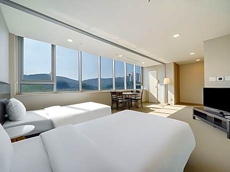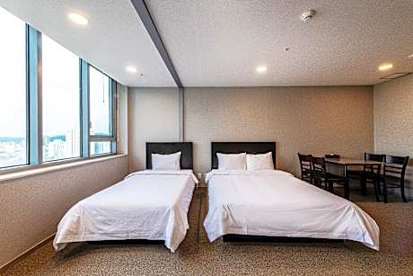 The Triny Urban Suite offers top-notch services and amenities, ensuring guests experience utmost comfort. Share your photos and respond to emails at your convenience, thanks to the free Wi-Fi internet access offered by hotel.Taxi offerings at the hotel enhance the ease of discovering Yongin-si.Visitors can take advantage of the accessible parking options directly at the hotel.The accommodating team at the reception will aid you with amenities such as luggage storage.Room amenities feature daily housekeeping, allowing you to unwind and make the most of your visit. Minor items you neglected to bring won't cause major issues! Simply visit convenience stores to acquire what's necessary. The hotel maintains a completely smoke-free zone, providing a breathable atmosphere.Each accommodation at The Triny Urban Suite is thoughtfully created and adorned to provide visitors with a comfortable, home-like atmosphere. In certain rooms, the hotel offers blackout curtains and air conditioning for guest convenience and satisfaction. In select rooms, guests at the hotel can enjoy top-notch in-room entertainment with television and cable TV available for their convenience.Rest assured, in a few chosen rooms, you will find the convenience of a refrigerator and bottled water at your disposal. The Triny Urban Suite offers a hair dryer, toiletries and towels in the restrooms of specific accommodations. No matter your specific dietary needs, rest assured that The Triny Urban Suite provides an array of kosher choices to ensure your dining experience is nothing short of delightful.