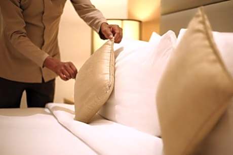- Las sábanas y toallas se lavan a una temperatura mínima de 60 °C/140 °F.