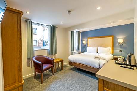On the banks of the River Mersey, the Waterside Hotel is just 10 minutes from Manchester airport. The hotel has a restaurant and leisure center. The comfortable rooms at the Waterside each have a private bathroom, tea and coffee facilities and a flat-screen TV with Freeview. There is also free Wi-Fi, free parking, and a 24-hour front desk. Guests have use of the Waterside Leisure Club, which features a 25-yard swimming pool, a hydrotherapy pool, thermal suites, saunas, steam rooms and a gym. The gym includes free weights, a resistance area, cardio room, functional rig and designated BOX12 studio as well as a bespoke recovery area. The Restaurant serves a varied menu for evening dining. There is also a lounge bar offering a menu throughout the day and evening. Located in Didsbury, the Waterside Hotel has easy access to the M56 and M60 motorways. Manchester city center is a 15-minute drive away and Old Trafford can be reached in 20 minutes’ drive. Didsbury has excellent public transport links with a train and Metrolink station nearby as well as extensive bus routes.