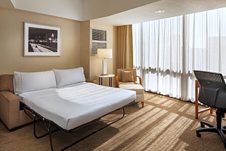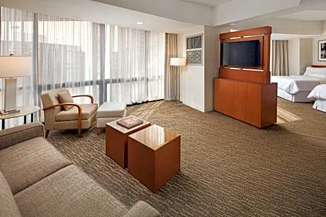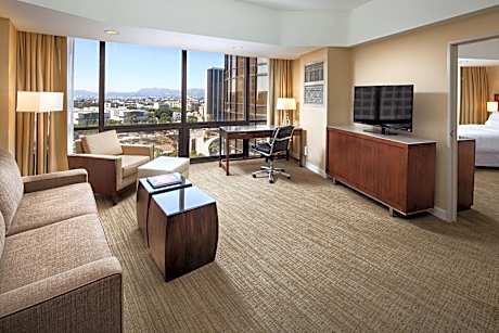 Este hotel, situado a 1,6 km del Museo Grammy, del centro de convenciones de Los Ángeles, del Peacock Theater LA LIVE y del Staples Center, ofrece un restaurante con vistas panorámicas desde la planta 35 y una piscina al aire libre. Las modernas habitaciones del The Westin Bonaventure Hotel & Suites, Los Angeles cuentan con ventanales, aire acondicionado, caja fuerte para ordenador portátil, servicio de despertador, un escritorio amplio y artículos de aseo gratuitos en el baño privado. Las habitaciones están decoradas en tonos tierra y tienen ropa de cama de lujo. También se ofrecen cafetera Starbucks y tetera Tazo. Algunas suites cuentan con una amplia zona de estar. El restaurante LA Prime del The Westin Bonaventure ofrece vistas al centro de Los Ángeles y sirve filetes gourmet y marisco. El Lakeview Bistro y el BonVista Lounge ofrecen cocina americana clásica. En el Lobby Court se ofrecen aperitivos recién hechos. El Los Angeles The Westin Bonaventure Hotel & Suites, Los Angeles ofrece servicios de limpieza en seco, servicio de aparcacoches, clases de cocina interactivas y gimnasio. La recepción está abierta las 24 horas. El estadio de los Dodgers está a solo 10 minutos en coche. El aeropuerto internacional de Los Ángeles está a solo 20 minutos en coche del The Westin Bonaventure Hotel & Suites, Los Angeles. Venice Beach está a 32 km.