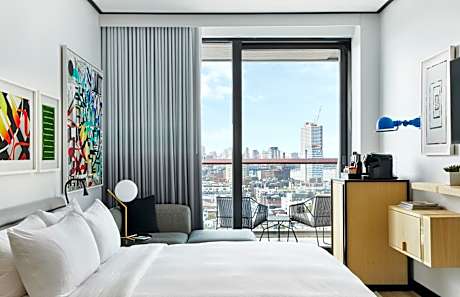 El William Vale ofrece alojamiento en Williamsburg, frente a Manhattan, frente al East River, y cuenta con una piscina de 18 metros en la azotea y un chef galardonado que supervisa las opciones gastronómicas. Todas las habitaciones están decoradas con detalles de metal personalizados. Todas las habitaciones del William Vale cuentan con ventanales, balcones al aire libre y vistas. También se ofrecen duchas de lluvia con mampara de cristal. El chef Andrew Carmellini ofrece tres conceptos culinarios distintos con opciones de comedor en la habitación y menús junto a la piscina en el The Vale. El vestíbulo está adornado con obras de arte de la artista Marela Zacarías, que vive en Brooklyn. El resto del establecimiento está decorado con obras de arte de otros artistas locales. El William Vale se encuentra a 6,5 km del Barclays Center y a 7,2 km del Museo de Brooklyn. El aeropuerto internacional John F. Kennedy está a 24 km del establecimiento. La parada del ferry del East River está a 800 metros, mientras que la estación de metro Bedford Avenue (tren L) está a 640 metros.