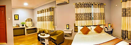 Great care is taken to ensure guests experience comfort through top-notch services and amenities.Remain linked during your visit by utilizing the complimentary internet access available.Prior to your check-in date, you can arrange airport transportation services, guaranteeing a seamless and efficient experience for both arrival and departure.Services offered by taxi, car hire and shuttle at the hotel ensure effortless exploration of Pyin Oo Lwin. The hotel offers complimentary parking for guests who arrive with their own mode of transport.Effortlessly plan your daily activities and travel requirements with concierge service and luggage storage provided by the front desk services. Securing passes to the city's top attractions is simple with the hotel's ticket service and tours. For extended visits or whenever required, the dry cleaning service and laundry service ensures your preferred travel garments remain clean and accessible. During leisurely days and evenings, in-room amenities such as 24-hour room service, room service and daily housekeeping enable you to maximize your stay in the room.The hotel is completely smoke-free.In limited designated zones, smoking is exclusively permitted. Crafted for coziness, every guestroom provides an array of features, guaranteeing a tranquil night's sleep while maintaining the level of comfort.For a more enjoyable stay, select rooms at hotel are equipped with linen service, blackout curtains and air conditioning. Expand your in-room entertainment choices with various amenities, such as television offered in certain accommodations.Rest assured that your hydration needs will be met, as some guestrooms are equipped with a refrigerator, bottled water, a coffee or tea maker, instant coffee and mini bar.Maintain your cleanliness and comfort using a hair dryer, toiletries and bathrobes available in select guest restrooms. Begin your day on a delightful note with a scrumptious complimentary breakfast, consistently served at Thiha Bala Hotel.During your visit, indulge in a range of delightful culinary choices at hotel to enhance your experience. Experience a fantastic evening effortlessly! Relish an entertaining night without venturing beyond the confines of the bar.Snack vending machines operate around the clock, providing you with easy access to treats regardless of the hour.Do you possess exceptional culinary skills? Prepare your meals personally within the hotel at its shared kitchen.Indulge in the numerous pursuits available at Thiha Bala Hotel. Treat and spoil yourself by taking a trip to massage.