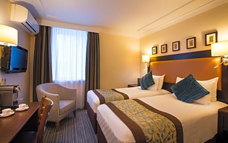 Thistle Heathrow, ubicado en la Terminal 5, es la opción perfecta si busca un hotel cerca del Aeropuerto de Londres Heathrow o antes de partir de vacaciones. Tenemos todo lo necesario para que se sienta como en casa, incluyendo un cómodo salón y bar, 266 habitaciones con baño privado y 450 plazas de aparcamiento. Sumérjase en el espíritu navideño y relájese en nuestro flamante Aviator Sports Bar & Restaurant. Disfrute de deportes en directo con una cerveza bien fría y una hamburguesa de primera. Los Heathrow Pods junto a nosotros le llevan directamente desde el hotel a la Terminal 5 en solo 5 minutos, con un horario de 4:00 a 00:15, ¡para que su experiencia previa al vuelo sea relajada! Si tiene algo de tiempo libre antes de volar, ¿por qué no visitar las atracciones locales? Puede hacer turismo por los alrededores de Heathrow y llegar fácilmente a Wimbledon, Windsor, Ascot y al tour por los estudios Warner Bros. de Harry Potter para una excursión de un día desde Thistle Heathrow. Si necesita aparcamiento durante su estancia, contacte directamente con el equipo de Reservas del hotel para consultar la disponibilidad. Tenga en cuenta que este hotel no dispone de ascensor, por lo que se accede a las habitaciones y restaurantes de las plantas superiores por las escaleras.