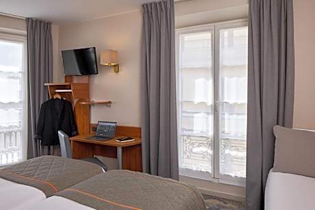 In the Montmartre district of Paris, this Timhotel provides rooms with free Wi-Fi access, flat-screen TVs and private bathrooms. A buffet breakfast is served daily at the Timhotel Montmartre. The hotel also provides a 24-hour front desk, where guests can request hairdryers and ironing facilities. The Timhotel Montmartre is a 5 minute walk from the Sacre Coeur Basilica, the Moulin Rouge and the Dali Museum. It is 100 yards from Abbesses Metro Station, which provides direct access to Montparnasse.