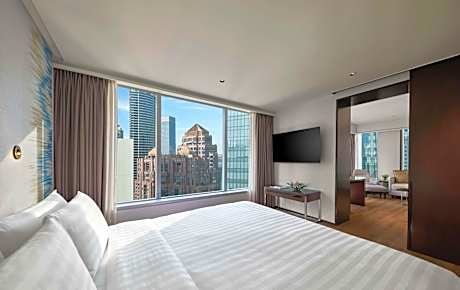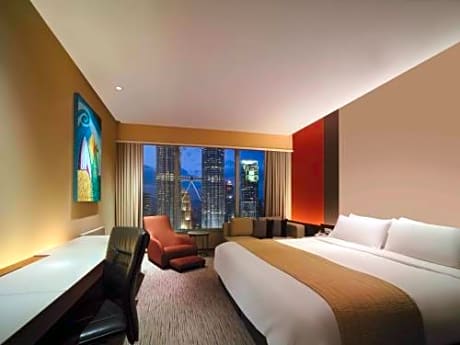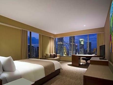 Con acceso directo al Suria KLCC y a las Torres Petronas, el lujoso Traders Hotel ofrece piscina cubierta y dos restaurantes. Hay wifi gratis en todo el establecimiento. El Traders Hotel Kuala Lumpur ofrece servicio de traslado gratuito en buggies al centro comercial Suria KLCC. Se encuentra a unos 47 km del Aeropuerto Internacional de Kuala Lumpur. El Royal Selangor Golf Club y el centro comercial Pavilion Mall están a menos de 1,5 km del hotel. Las amplias habitaciones cuentan con ventanales con vistas al paisaje urbano. Todas están equipadas con TV de pantalla plana por cable y set de té y café. Los huéspedes pueden relajarse en el baño de vapor del spa. Hay una pista de jogging de 1,3 km alrededor del parque KLCC y un gimnasio abierto de 7:00 a 20:00. El hotel también ofrece aparcamiento gratuito. El restaurante Gobo Chit Chat sirve especialidades occidentales y asiáticas. El Sky Bar al aire libre ofrece cócteles.
