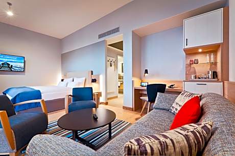 This Hotel is located directly on the white and sandy south beach in Wyk, on the island of Föhr. Upstalsboom Wyk auf Föhr has a 6.6 ft² spa area. The rooms and suites include a flat-screen TV, a sound bar, free WiFi and a mini-bar. Most rooms or suites have a balcony and wonderful views of the North Sea and the Halligen islands. The hotel has two restaurants named "sydbar" and "bi a wik" with a terrace and serving creative cuisine. A rich breakfast buffet is available until 12:00 each day. The hotel's restaurant named sydbar offers coffee and cake, culinary specialties and fine wines. The spa area features an indoor and outdoor pool, various saunas, a steam bath, relaxation areas and a gym. Massage, beauty and relaxation treatments and sports facilities are available. An underground car park and parking spaces are located directly at the hotel. Wyk town center and various leisure activities are within walking distance. Wyk Harbor is a 10-minute drive away.
