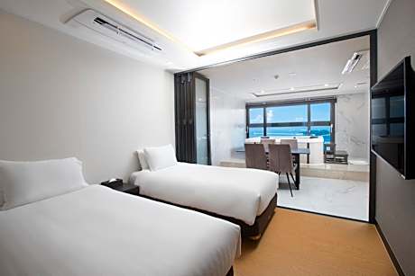 Experience an abundance of unparalleled facilities and features at Yeosu Expo Utop Marina Hotel Resort. Maintain seamless communication using the complimentary Wi-Fi at hotel. For visitors traveling by automobile, complimentary parking is available.During your stay at this fantastic hotel, the attentive front desk personnel can provide you with a range of amenities such as luggage storage and safety deposit boxes. Obtaining passes for the town's top entertainments becomes effortless with hotel's tours.At the hotel, utilize the on-site dry cleaning service and laundry service to maintain your beloved travel attire fresh, allowing you to bring fewer clothes.During leisurely days and evenings, on-site amenities such as daily housekeeping enable you to fully enjoy your accommodation. For all your minor, last-minute requirements, the convenience stores can promptly cater to them, eliminating the need to venture out. Kindly note that smoking is prohibited in the hotel to ensure fresher air for all visitors. For visitors wishing to smoke, designated smoking zones can be found. At Yeosu Expo Utop Marina Hotel Resort, every guestroom is provided with convenient amenities and fittings to ensure a comfortable stay. Enhance your experience at hotel with the knowledge that certain rooms are equipped with linen service, blackout curtains and air conditioning for your convenience.At Yeosu Expo Utop Marina Hotel Resort, each visit offers an array of intriguing room configurations, featuring accommodations with separate living room and balcony or terrace, ensuring a distinct experience every time.Certain rooms boast in-room amusement features such as television and cable TV, offering guests an enjoyable stay. In select rooms within the hotel, a refrigerator, bottled water, instant coffee and instant tea is available to cater to your requirements when desired.It is worth noting that certain guest bathrooms feature a hair dryer, toiletries and bathrobes for your convenience. Begin your day with a scrumptious on-site breakfast available each morning at Yeosu Expo Utop Marina Hotel Resort. Begin your day feeling refreshed and invigorated as you enjoy a delightful cup of quality coffee available at the cafe situated within the hotel. At the hotel, an assortment of easily accessible and delicious meal choices are available to satisfy your appetite whenever it strikes. Enjoy an entertaining evening with your fellow travelers at the hotel's bar.At Yeosu Expo Utop Marina Hotel Resort, visitors have the option to receive groceries directly in their accommodation, ensuring outstanding comfort and simplicity when it comes to meals. During your stay at hotel, an array of engaging activities and amenities guarantees a delightful experience. Conclude your holiday perfectly with a visit to hot tub and steam room on your final days. Be sure to drop by the pool at hotel at least once during your stay.At Yeosu Expo Utop Marina Hotel Resort, utmost care is taken to ensure guests' comfort. Relish your preferred beverage in your swimwear by the hotel's poolside bar.Discover the fitness amenities at hotel to maintain your health and strength during your getaway.